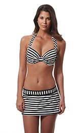 Stripey Bandeau Tankini & Printed Side-Tie Bikini (blue & green stripe)